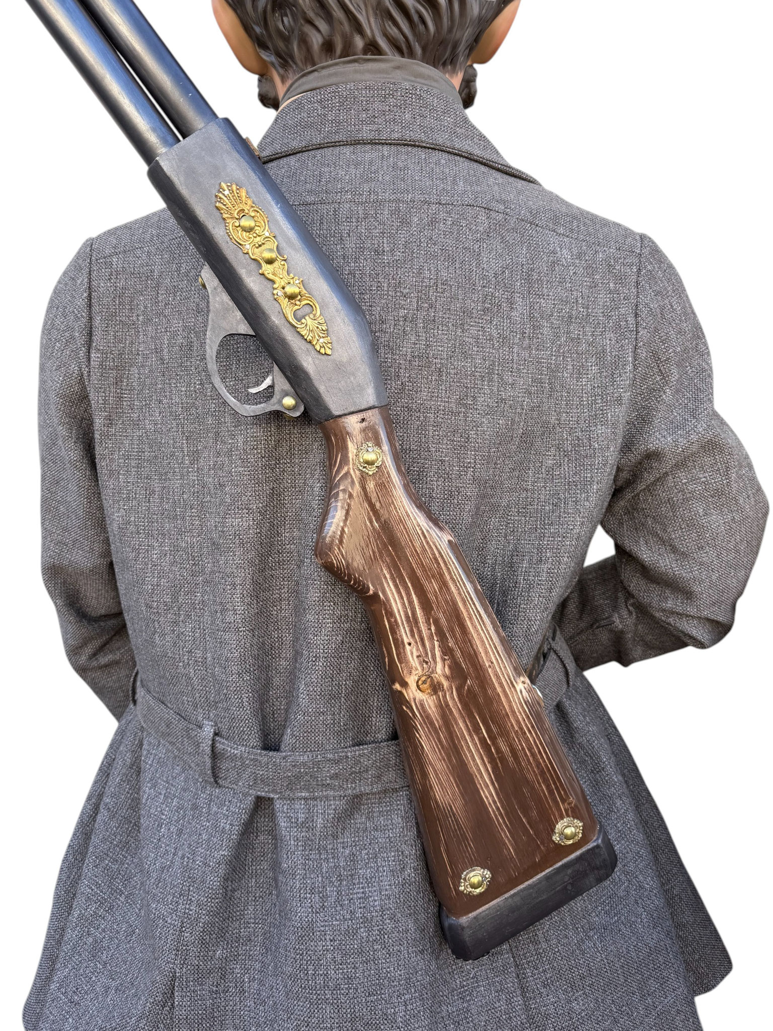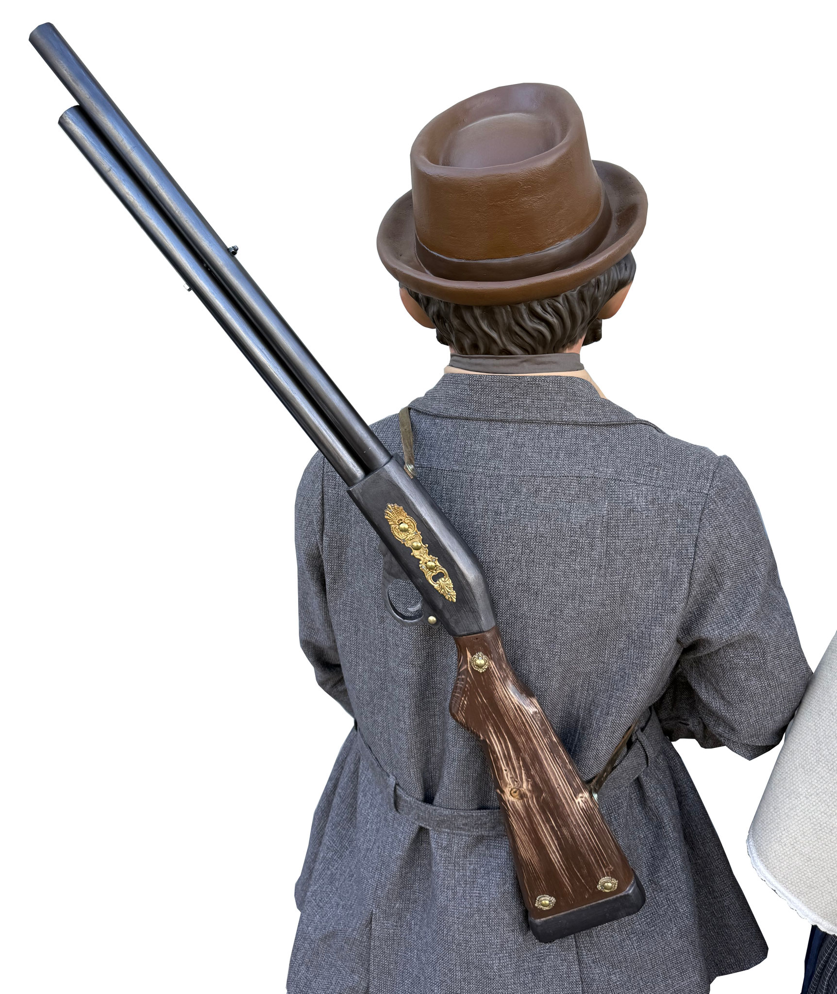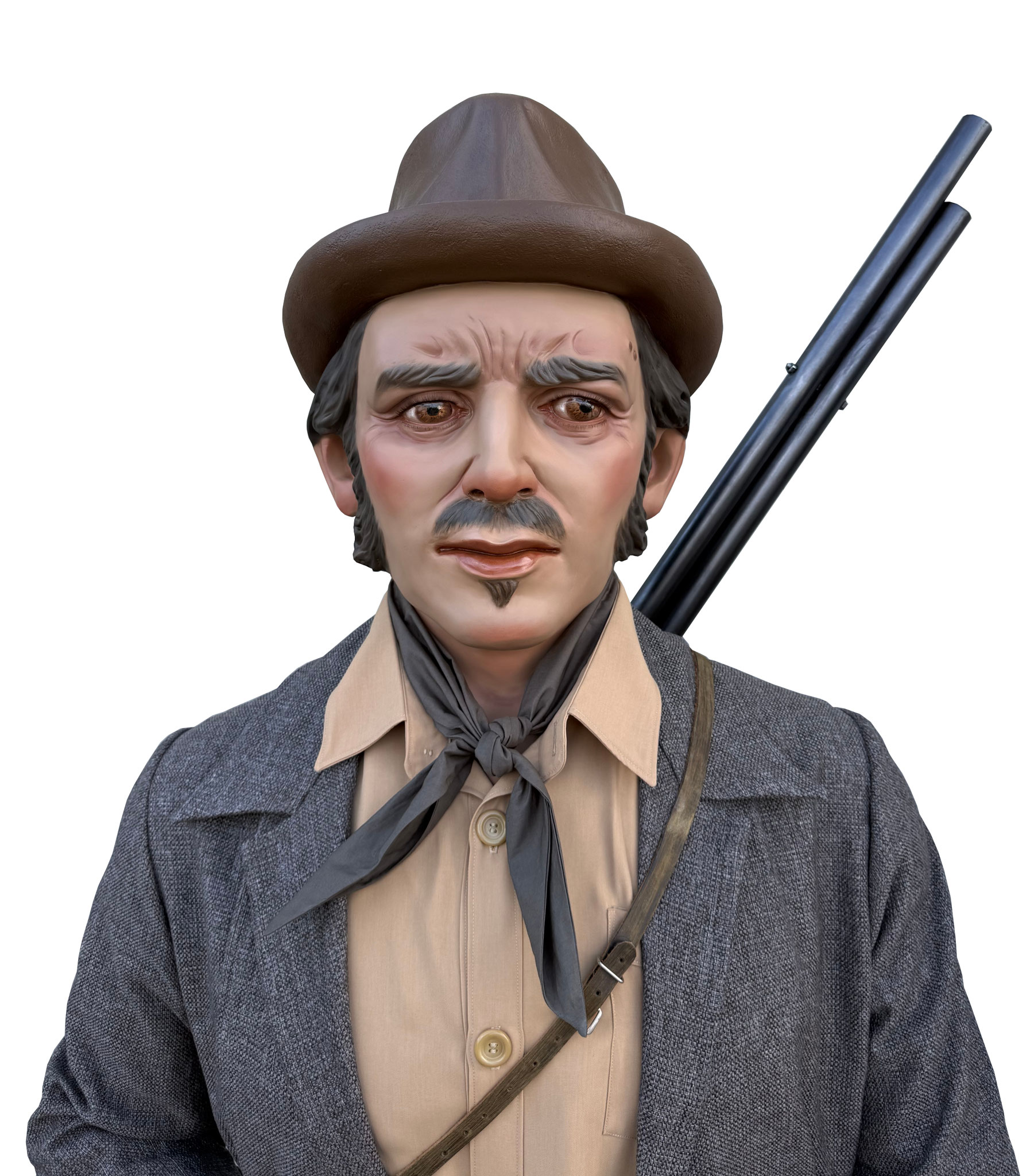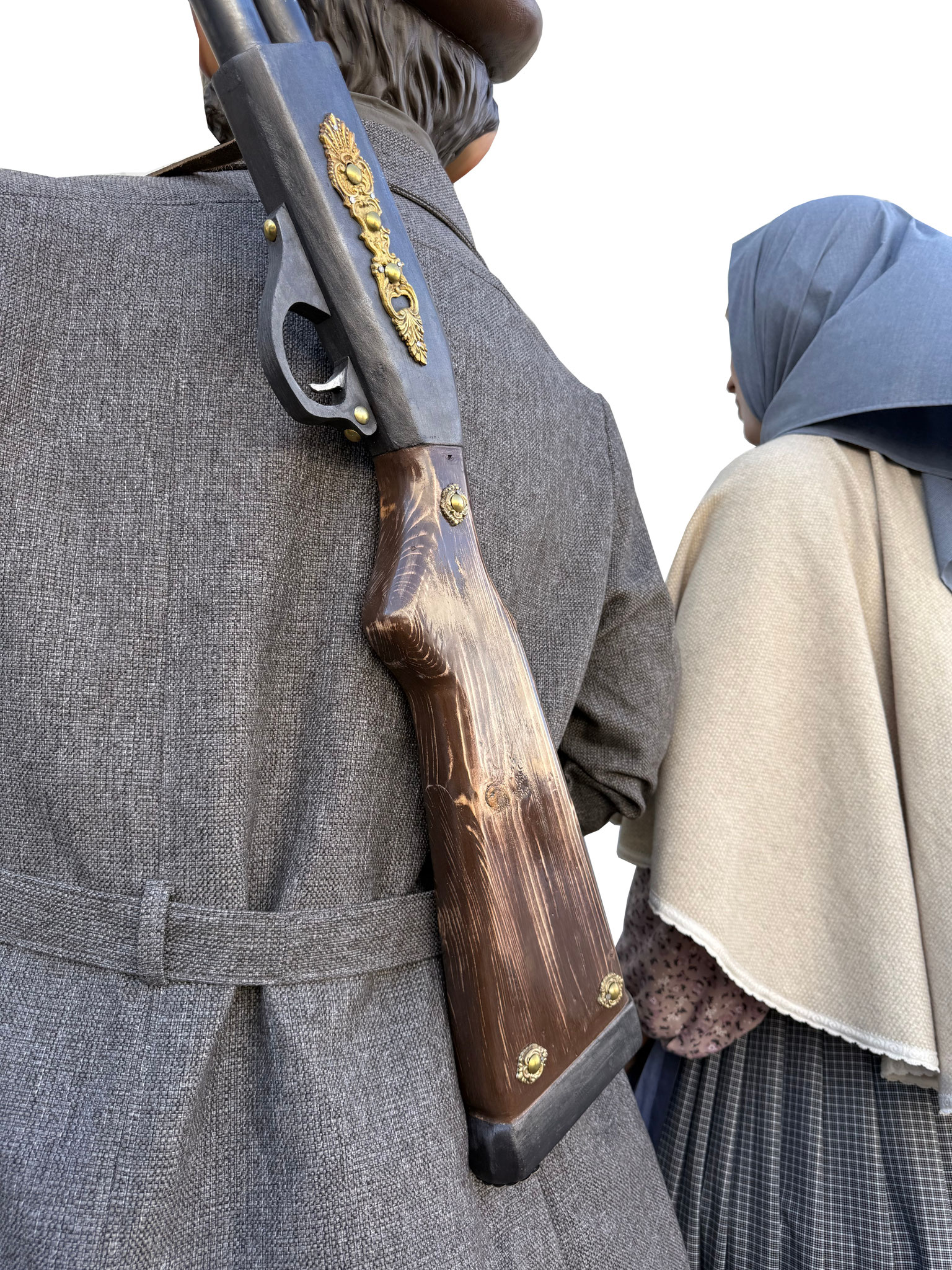 Según la leyenda, el último lobo en libertad cazado dentro de los términos de la Cuenca de Pamplona fue en lo que hoy denominamos Buztintxuri. Por otro lado, el personaje de guardesa o guardabarreras honra a las mujeres encargadas de la conservación, limpieza y seguridad de los pasos a nivel del ferrocarril y que hacían las señales que indicaban el estado de la vía y de los trenes en marcha al pasar por el sitio en el que se hallaban.