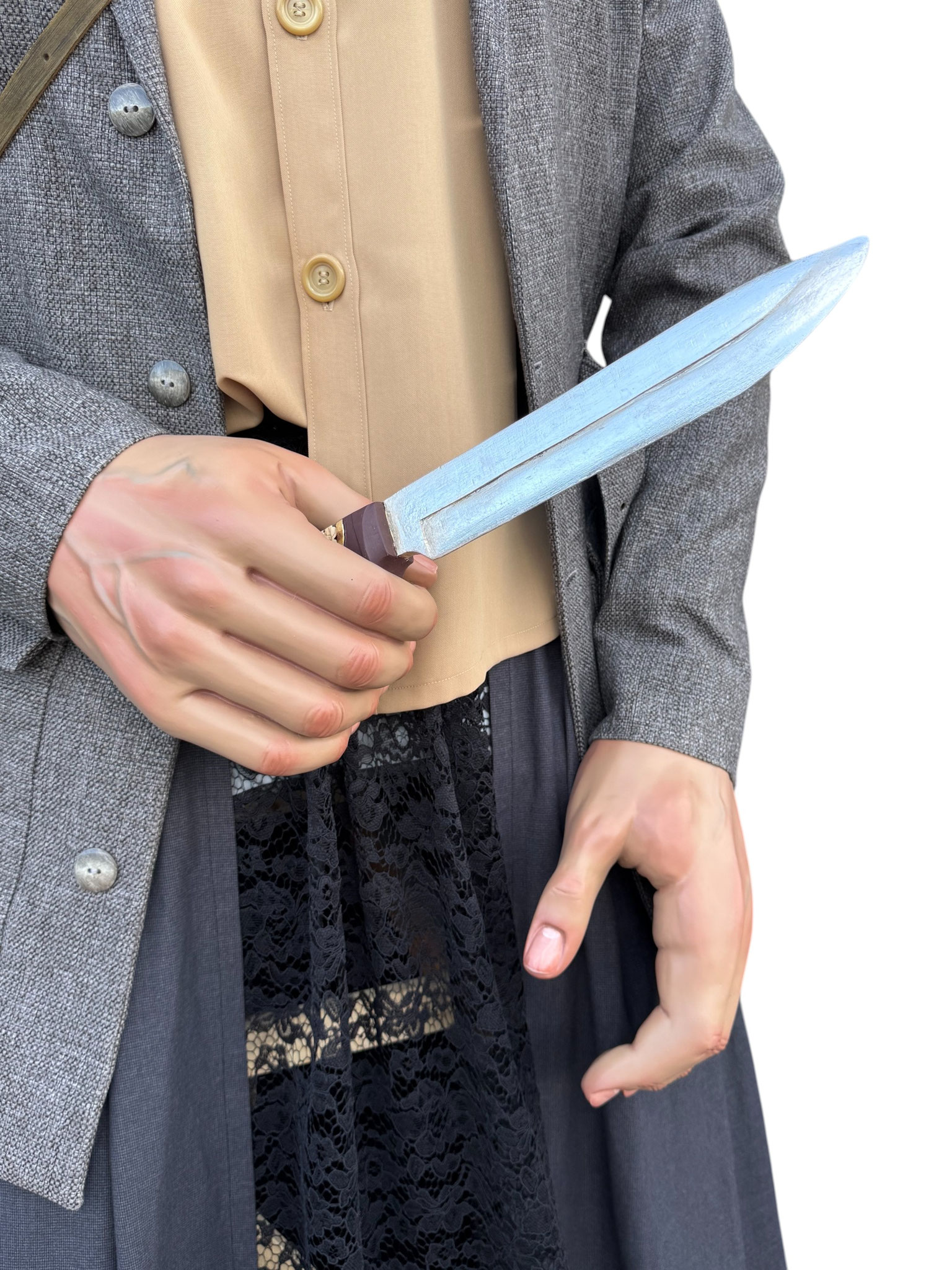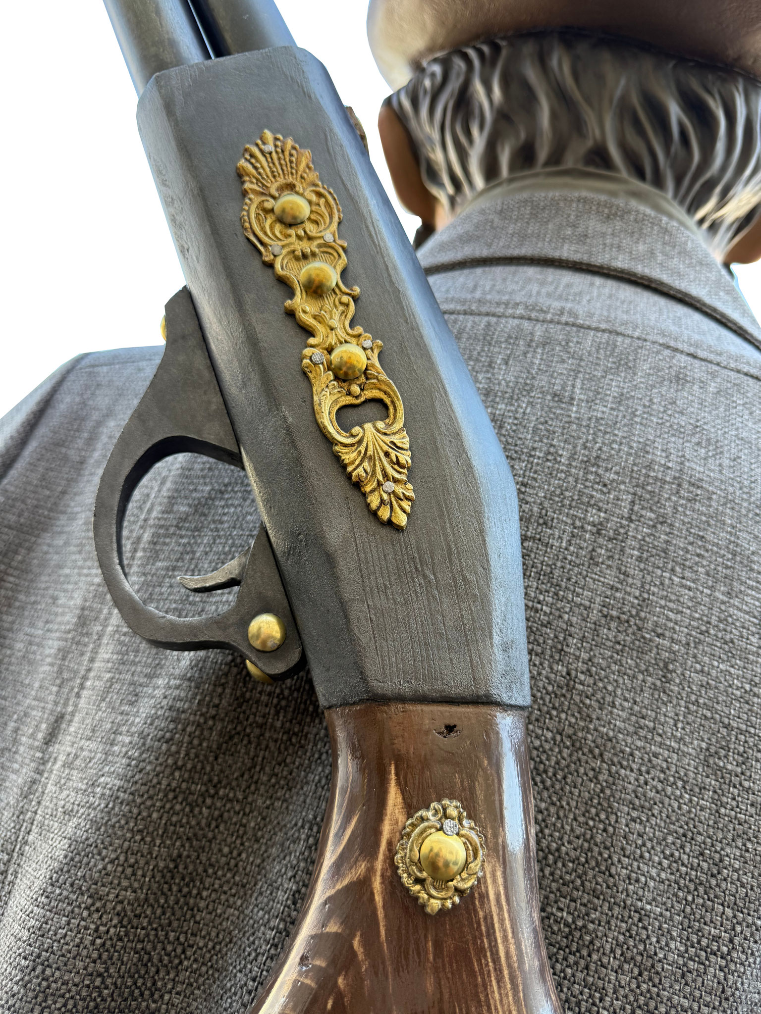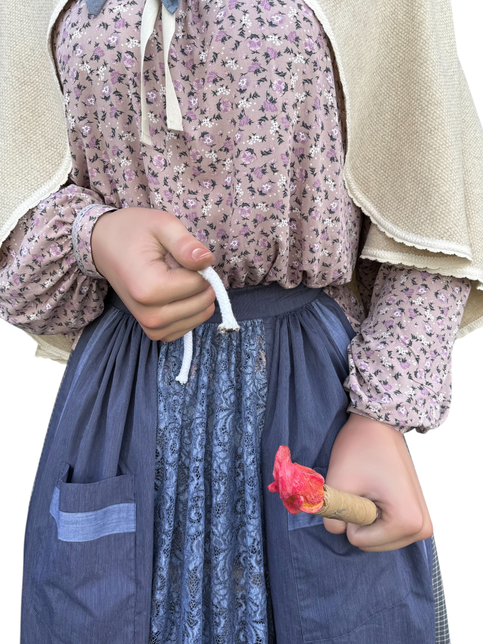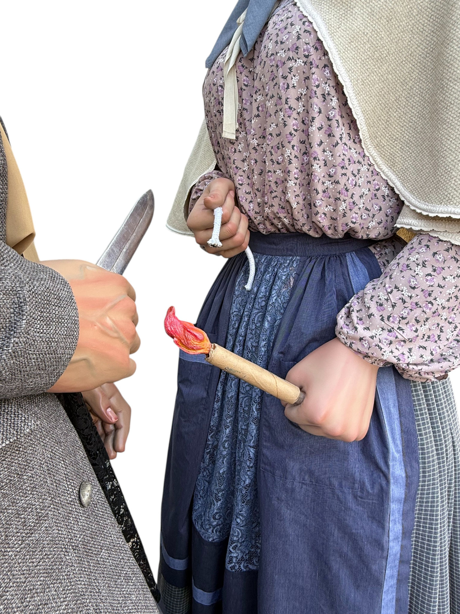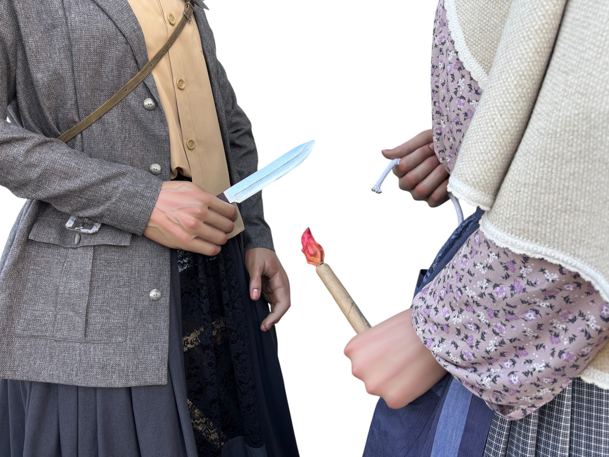Según la leyenda, el último lobo en libertad cazado dentro de los términos de la Cuenca de Pamplona fue en lo que hoy denominamos Buztintxuri. Por otro lado, el personaje de guardesa o guardabarreras honra a las mujeres encargadas de la conservación, limpieza y seguridad de los pasos a nivel del ferrocarril y que hacían las señales que indicaban el estado de la vía y de los trenes en marcha al pasar por el sitio en el que se hallaban.