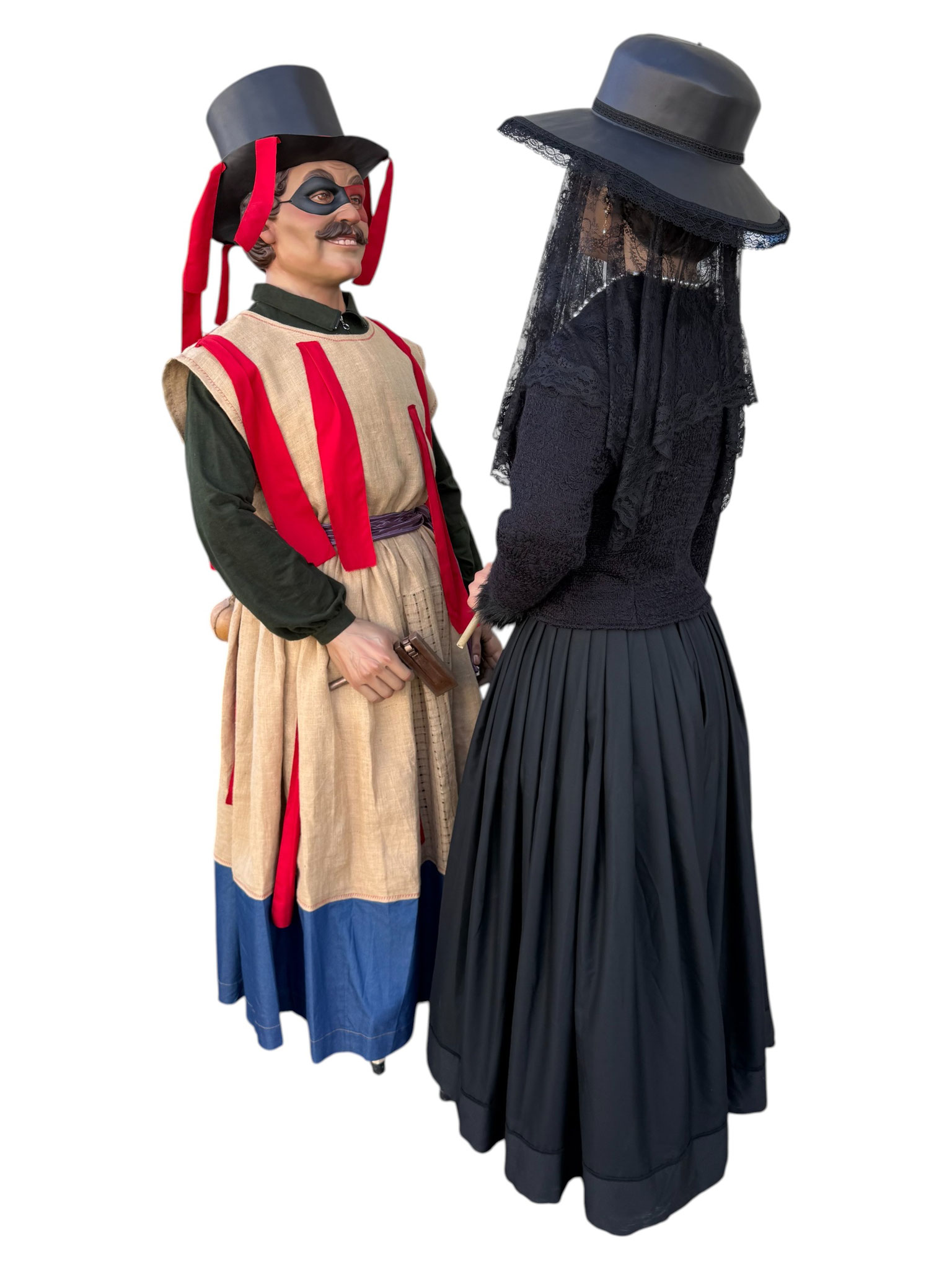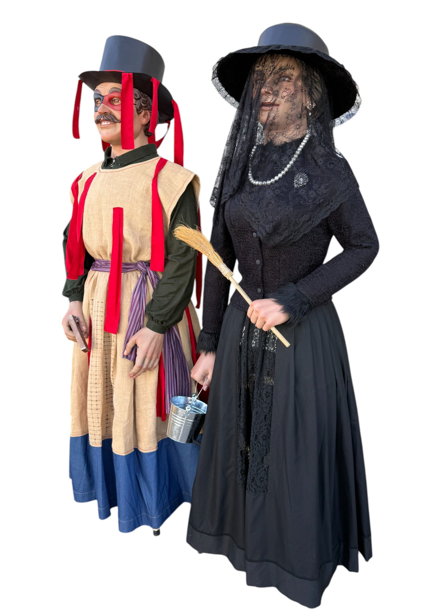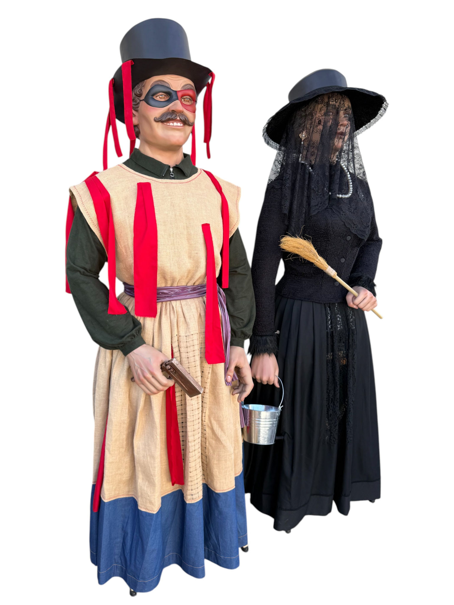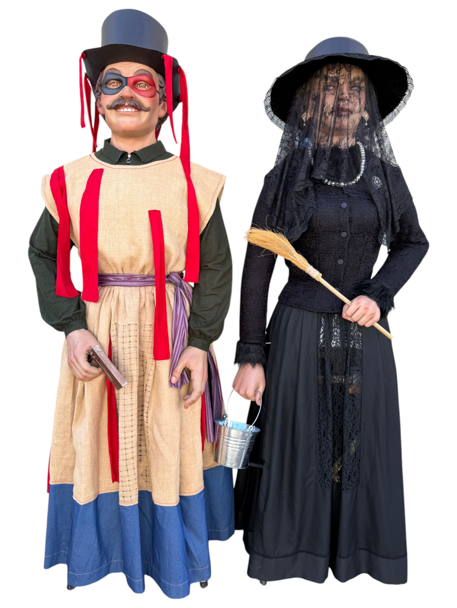 Pareja de gigantes de tamaño cadete para la localidad de Huarte (Uharte). Representan a Kemakulo y Minerva, personajes representativos del particular carnaval de Huarte. Miden 2,60m de altura aproximada y pesan alrededor de los 20Kg.