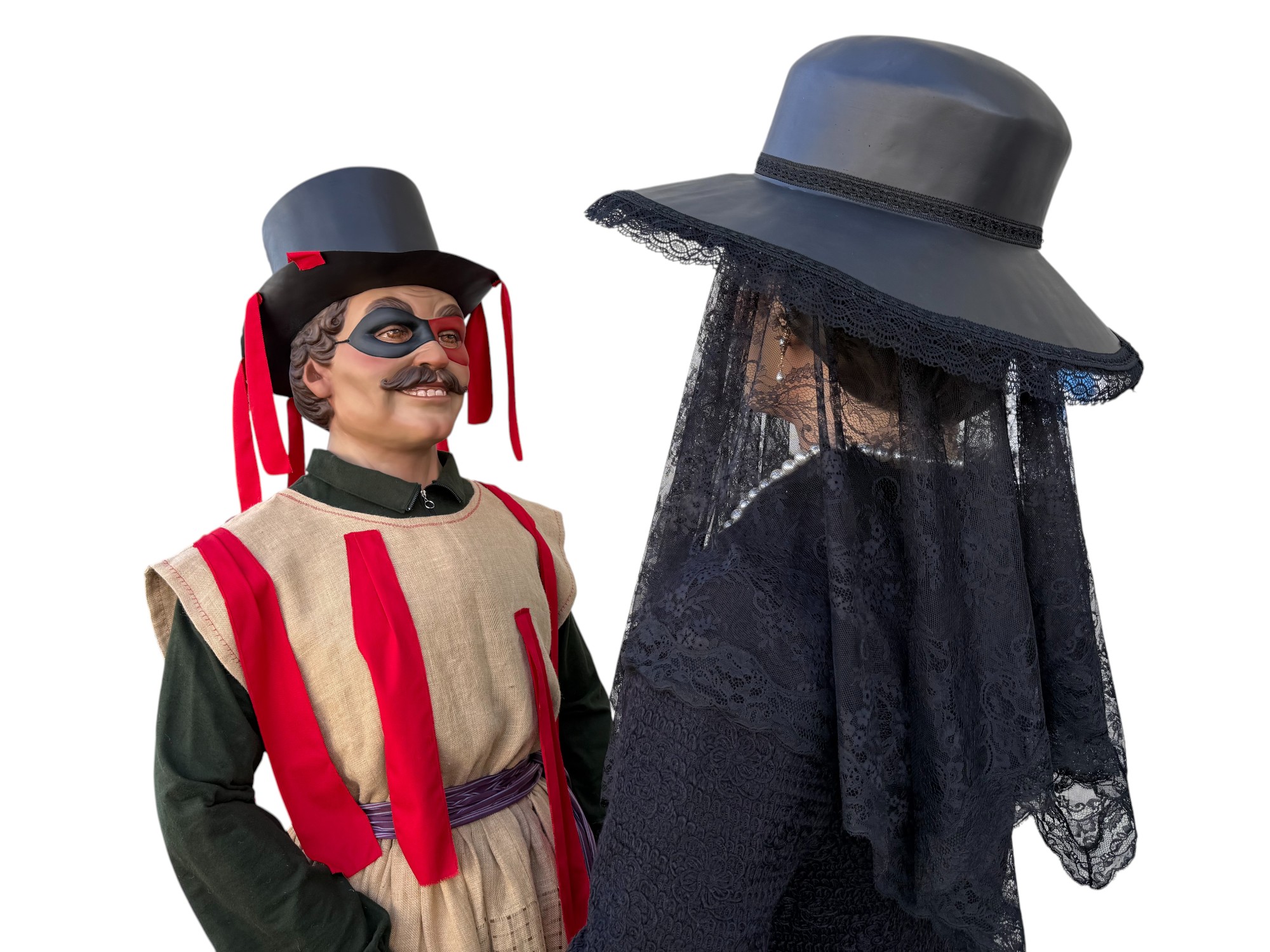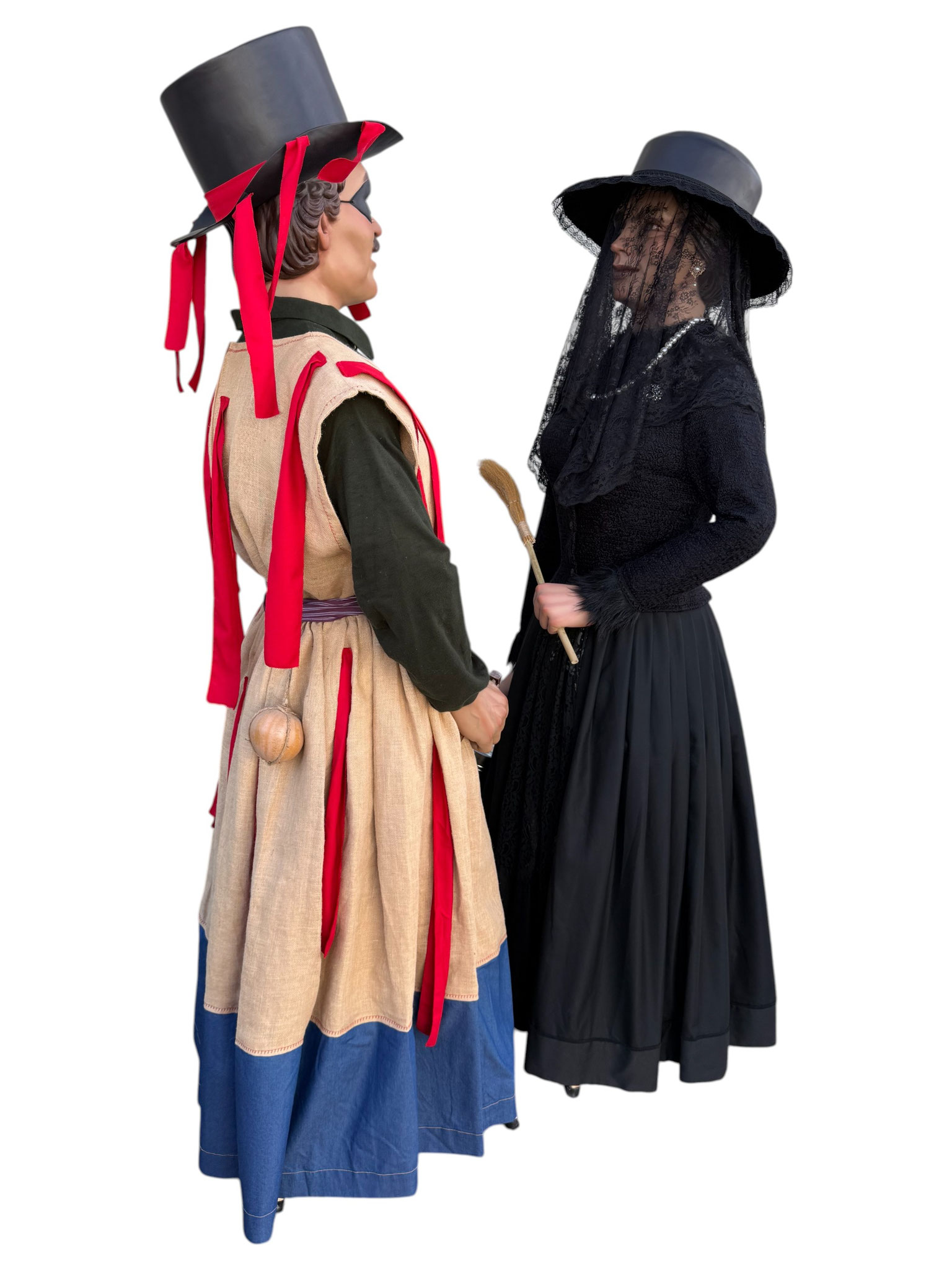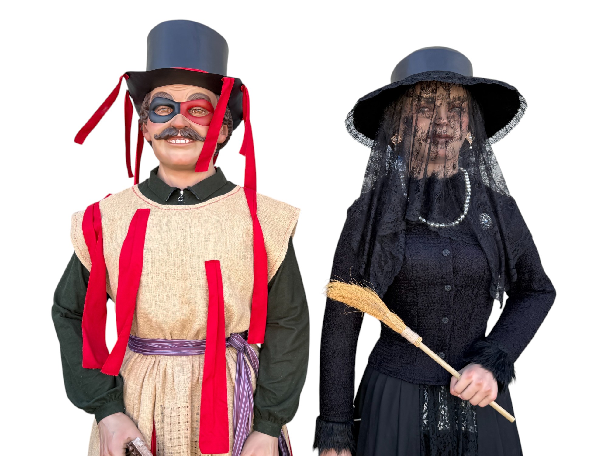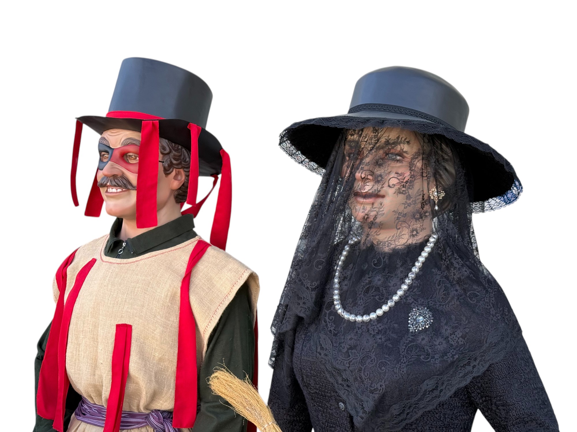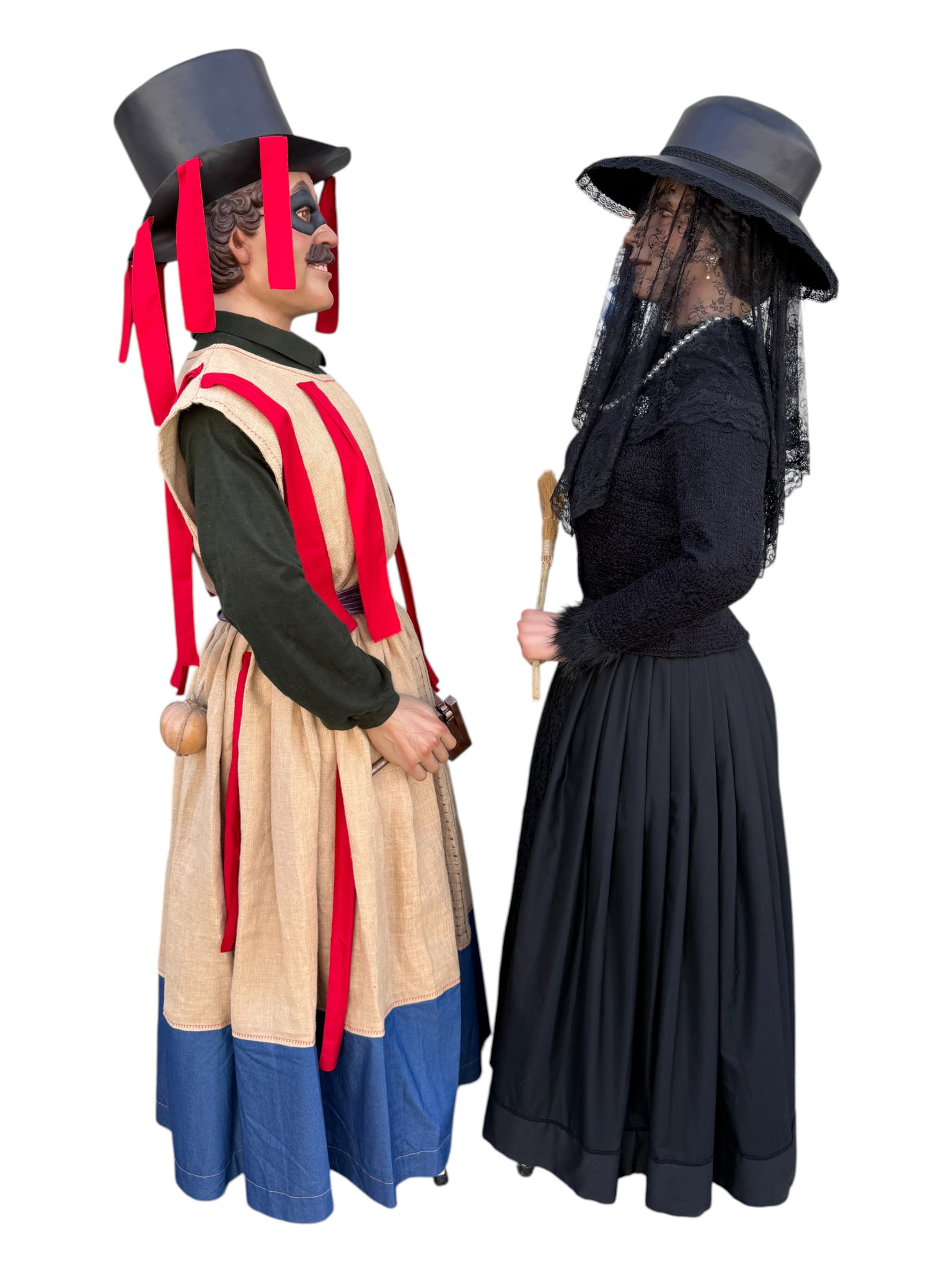 Pareja de gigantes de tamaño cadete para la localidad de Huarte (Uharte). Representan a Kemakulo y Minerva, personajes representativos del particular carnaval de Huarte. Miden 2,60m de altura aproximada y pesan alrededor de los 20Kg.