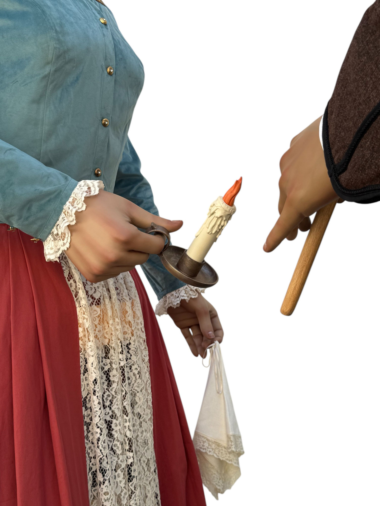 Lucia es la protagonista de la historia de brujería más conocida de Zalla. Su leyenda se desarrolla a principios del siglo XVIII o antes. Existen dos teorías de quien pudo ser Lucia. La primera es que pudo ser una saludadora, persona que se encargaba de procurar salud a los vecinos y documentadas en ambos siglos en Zalla, y de segunda, y más conocida, es que se trataba de una beata o serora, mujer que se ocupa de cuidar y limpiar la iglesia de San Pantaleón. La vestimenta del siglo XVIII no varía mucho de la de principios del XIX. Por ello, viste un traje como el recogido en el grabado de "Aldeana de Alonsotegi" con alguna modificación; Jubón verde, decorado con pasamanería y cierre al frente con botones forrados y una falda roja con cenefa de cuadros en la parte de abajo.