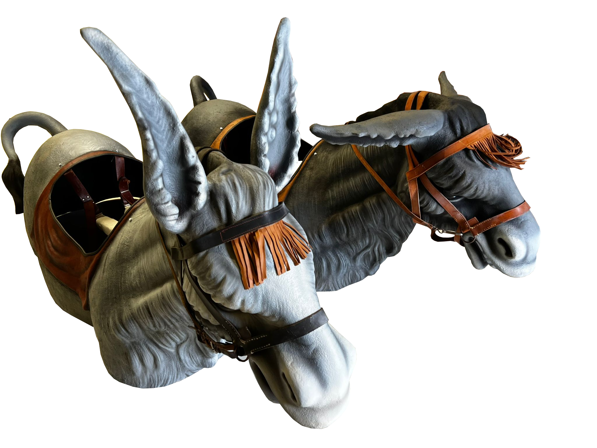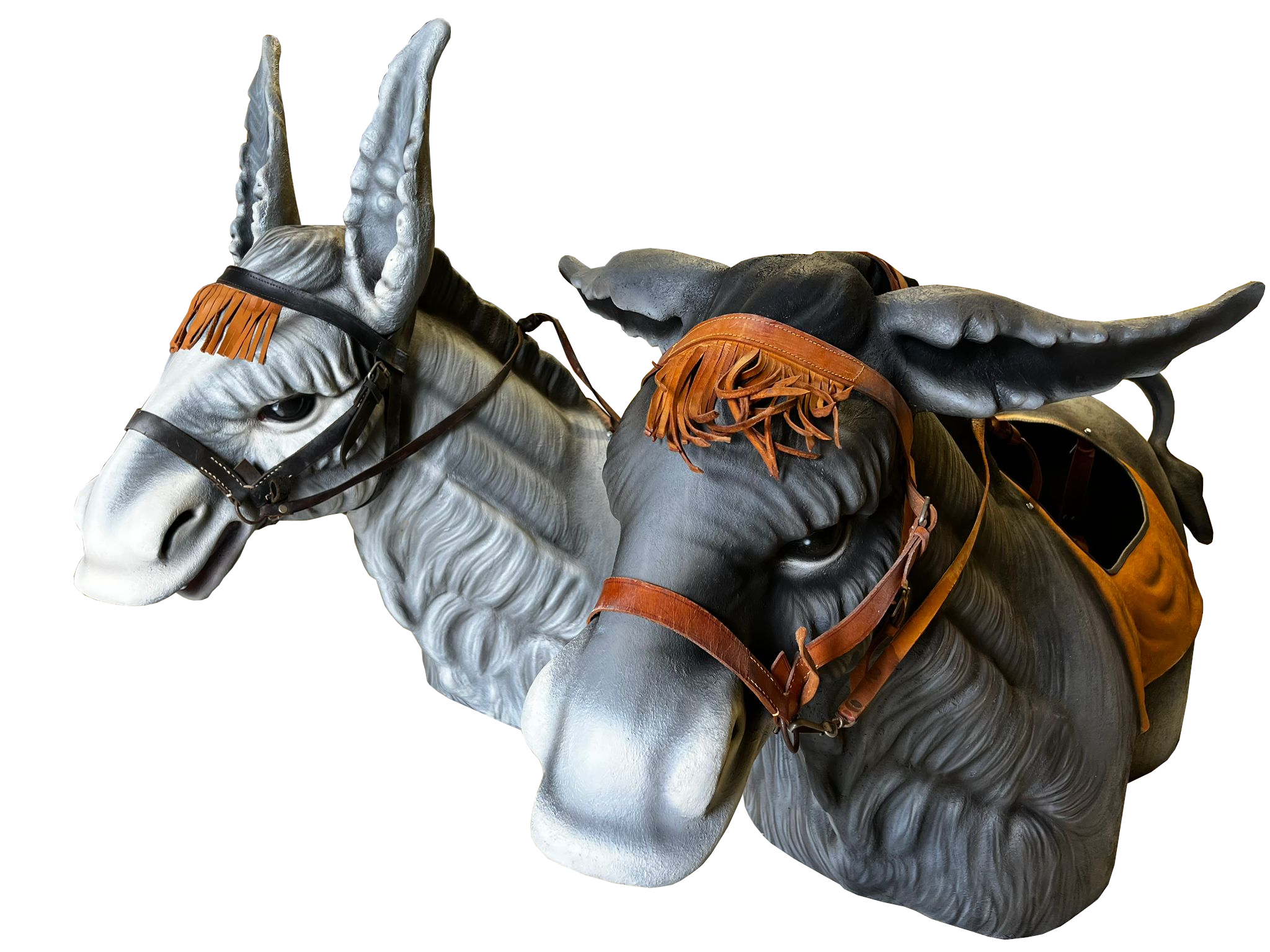 Los burros están policromados en técnica mixta.